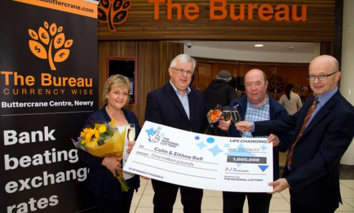 The Bureau Buttercrane sold a winning £1 million lottery ticket to Colin and Eithne Bell of Newry. The couple are the founders of a wonderful charity, The Kevin Bell Repatriation Trust based in Newry, County Down.